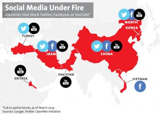完全屏蔽这三个网站的国家有:中国、朝鲜、伊朗