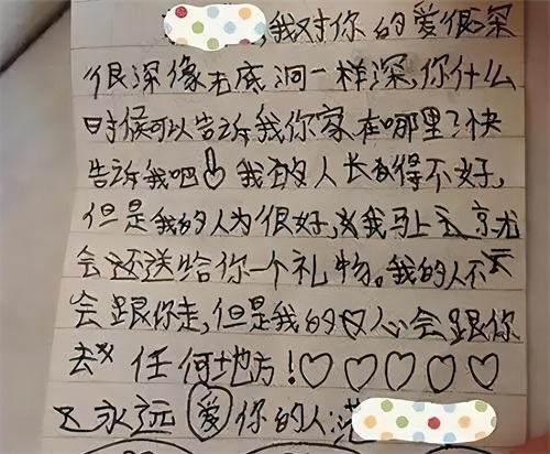 写这封情书的应该是一位女生,她看上了一位打篮球的男同学,并向对方表白“你就是我黑暗中的星星,我要好好学习,才可以配得上你”。记得自己上学的时候,也有很多女生痴迷于打篮球的男生,不过这位小学生的喜欢还是很正能量的,为了自己能配的上对方,要好好学习。