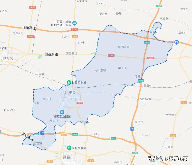 广平县,隶属于河北省邯郸市,位于河北省南部,太行山东麓海河平原的黑龙港流域,面积320平方千米,下辖7个镇,1个省级经济开发区。2021年,全县生产总值达到100亿元,