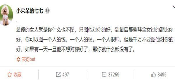 不过慢慢地却听不到他们俩的消息了,如今已然变成了骚男。说到骚男,他其实也离过一次婚,但他的态度没得说净身出户,算是拳师七号的高配版,却不知道他俩能不能走到最后。另外说下骚男的前妻七七,今天5月2号是她的生日,小编特意去看了一下,和以前比好不凄凉,仅有的几个留言也是在羞辱她,不过她输了吗,翻看她之前的文章人家早就打算好走到今天这一步了,就是图钱不图好。