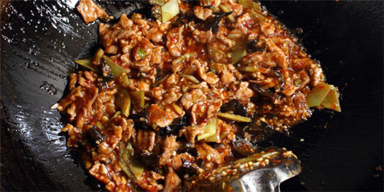 菜肴在加热过程中,原料中的汁液会向外流,与添加的汤水及液体调味品便融合在一起形成了菜汁。一般炒菜中的菜汁较为稀薄,不易粘附在原料表面,成菜后会产生“不入味”的感觉。但是勾芡后,芡汁的糊化作用便增加了菜汁的粘稠度,使菜汁能够较多地附着在菜肴之上,提高了人们对菜肴滋味的感受。