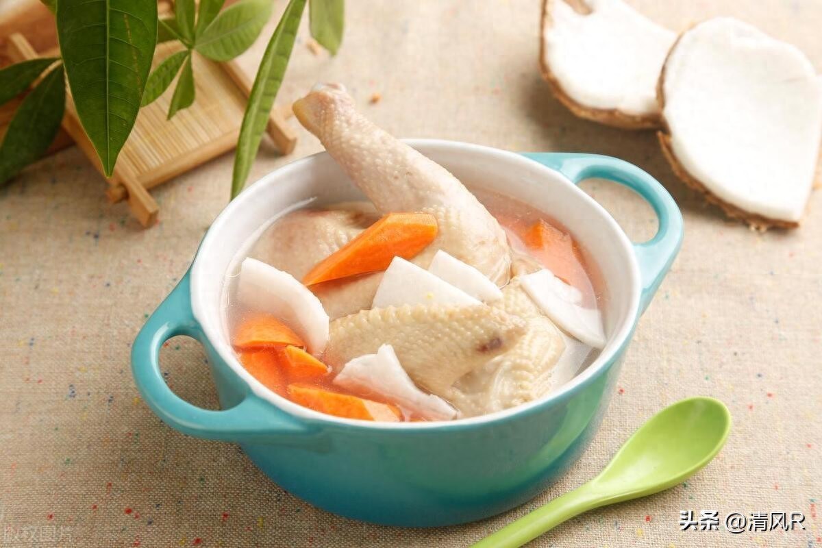 需要注意的是,椰子煲鸡汤需要较长的时间炖煮,才能让鸡肉和椰子的味道充分融合,同时也能让鸡肉更加鲜嫩。另外,如果喜欢更加浓郁的椰子香味,可以在炖煮的时候加入适量的椰浆。