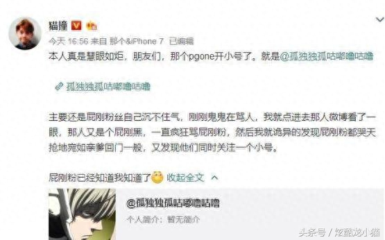 1月29日下午,一位电影博主发现PGone 的粉丝莫名嗨了起来,于是顺藤摸瓜,无意中竟然发现了PGone的微博小号@孤独独孤咕嘟噜咕噜。