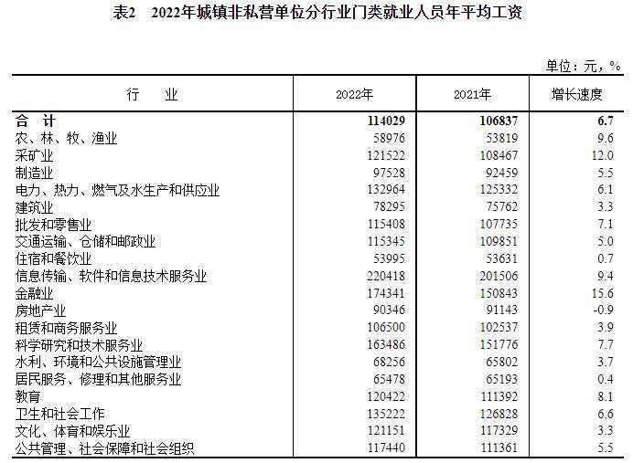 而从平均工资增速来看,金融业平均工资涨幅最高。国家统计局数据显示,城镇非私营单位和城镇私营单位中,金融业平均工资增速均为 15.6%。