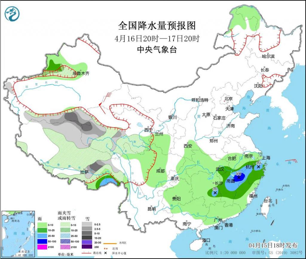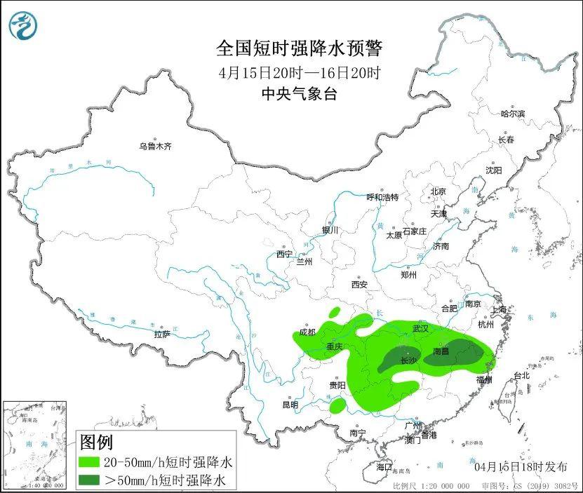 本轮降水以对流性降雨为主,警惕强对流灾害:此次过程为风雹和短时强降水齐发的混合型强对流天气,呈现出多发散发、强度较大的特征,预计,湖南、江西、湖北、浙江中南部、福建中北部及四川盆地东部和南部、贵州、重庆等地最大小时降雨量有 30~50 毫米,局地可达 60 毫米以上;上述部分地区还将出现 8~10 级、局地 11 级以上的雷暴大风或冰雹。中央气象台今天下午继续发布强对流天气黄色预警。