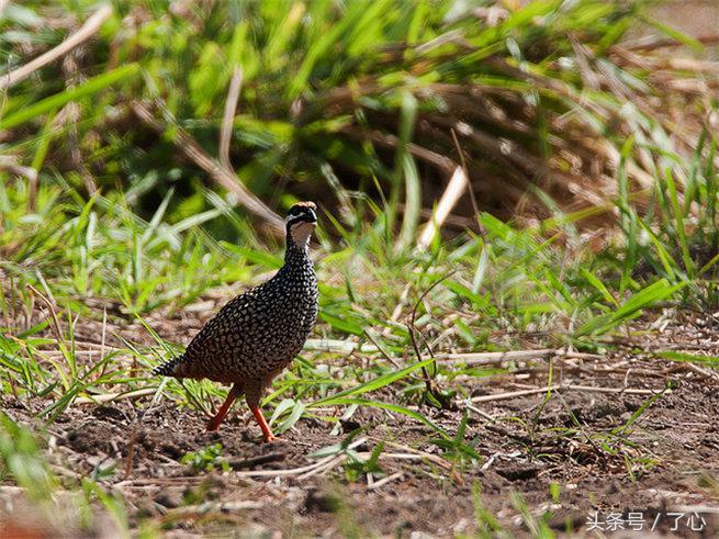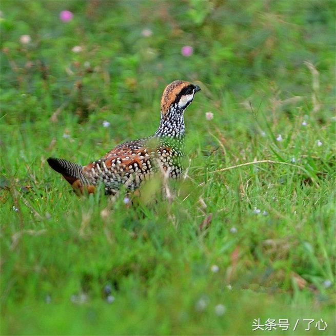 中华鹧鸪〔拉丁名:Francolinus pintadeanus)中等体型30厘米,又称中国鹧鸪、越雉、怀南。属鸡形目、雉科。枕、上背、下体及两翼有醒目的白点,背和尾具白色横斑。头黑带栗色眉纹,一宽阔的白色条带由眼下至耳羽,颏及喉白色。雌鸟似雄鸟,但下体皮黄色带黑斑,上体多棕褐色。虹膜-红褐色;嘴-近黑;脚-黄色。多在矮小山岗的灌木林中活动,有时候3~5只结群寻找食物。遇惊时很怏地匿藏在灌木丛深处,很难发现。脚爪强健,善于在地上行走,虽不常飞行,但飞行速度很快。主要以蚱蜢、蚂蚁等昆虫为食物,分布区主要在中国境内,国外见于印度、缅甸泰国和中南半岛一带。