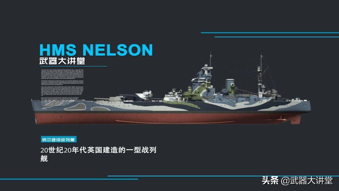 纳尔逊级战列舰是英国建造的第一级条约型战列舰,一共修建了两艘,分别是在1927年8月15日服役的纳尔逊号战舰和1927年11月10日服役的罗德尼号战舰,一战之后,随着技术的进步和造舰思想的改变,纳尔逊级战列舰的设计建造上与以往的战列舰有很多不同的特色。