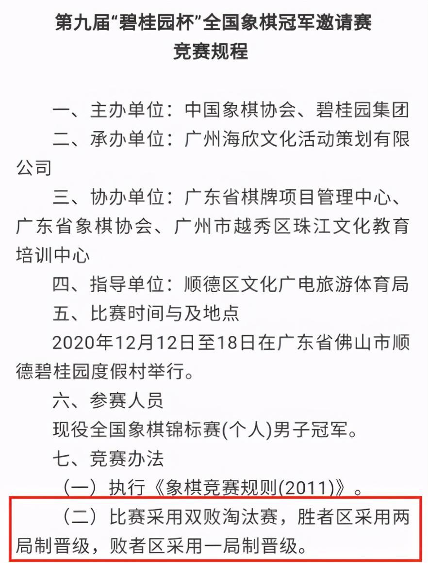 第九届“碧桂园杯”全国象棋冠军邀请赛规程详解:何为双败淘汰制
