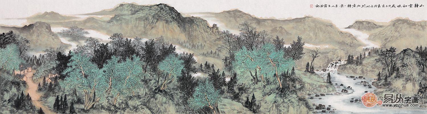王宁新品力作横条幅山水画作品《山静云初吐》作品来源:易从网