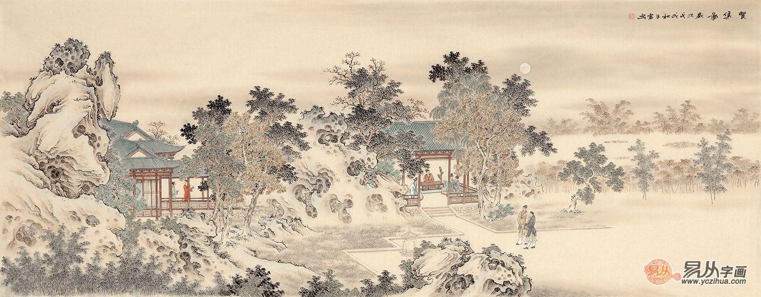 中美协画家王宁精心力作仿古国画《宝地雅居》作品来源:易从网