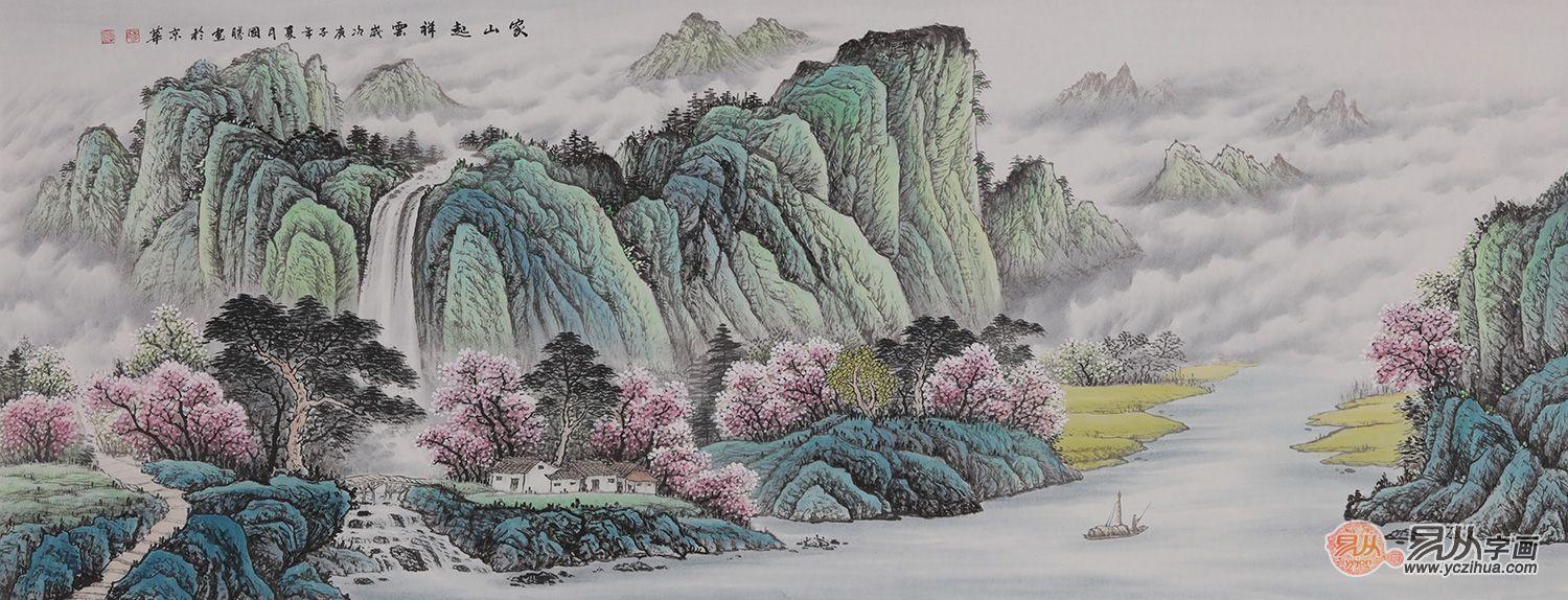 李国胜新品创作六尺横幅山水画《家山起祥云》作品来源:易从网