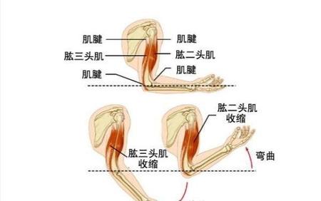 肱二头肌的作用:“近固定时肱二头肌使前臂在肘关节处屈和旋外,使上臂在肩关节处屈.远固定时,肱二头肌使上臂向前臂靠拢。”
