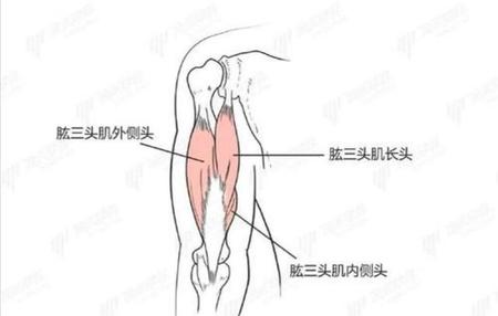 肱三头肌有三个头,分别是内侧头、外侧头和长头,这些肌肉群附着在盂下粗隆(肩胛骨)和肱骨骨干上,三头汇合,均止于肘关节后的尺骨鹰嘴。