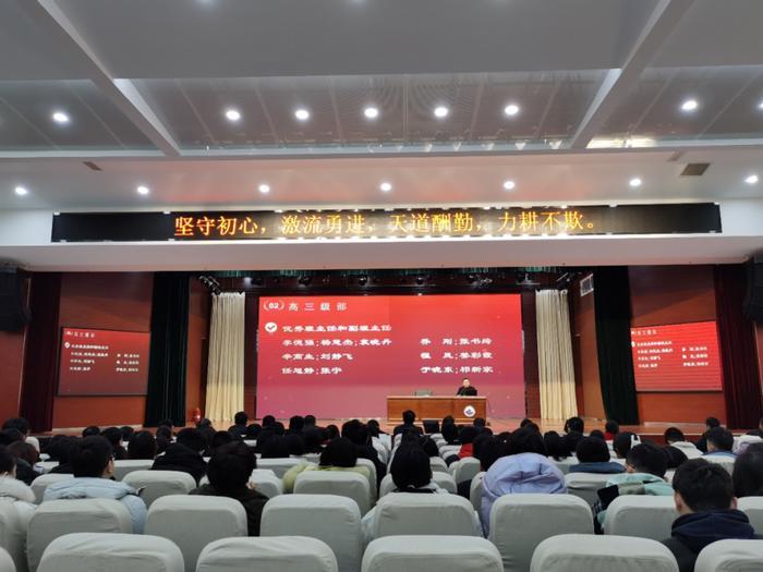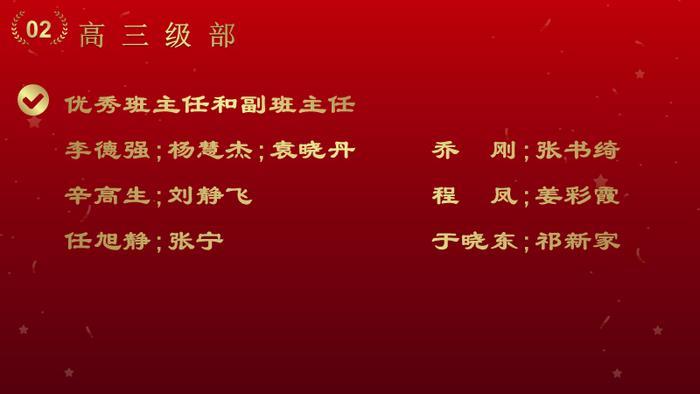 高中部副校长李德强就本学年上一学期各级部优秀教师进行了总结表彰并逐一点评。