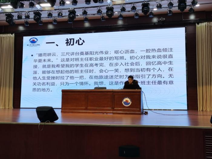 “初心对我来说很直接,就是我希望我的学生在高考完后、在步入社会后,回忆高中生涯,能够在想起他的班主任时,会心一笑,想到当初有个人,在他人生受挫时拉了他一把,在他旅途迷茫时为他指引了方向。无关功名利益,只为一个情怀。我想,这是作为一个班主任最有意思的地方。”