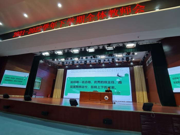 猛虎迎春,万象更新。2月13日,烟台市中英文学校高中部召开全体教师会。会议由高中部教研室主任刘玉萍主持,高中部优秀班主任代表、优秀备课组长代表、优秀教师代表和优秀青年教师代表分别进行发言,高中部副校长李德强对上一学期表现优秀的教师进行了总结表彰,高中部校长马建军就上一学期教育教学工作进行了总结,并对下一学期工作做了具体安排。