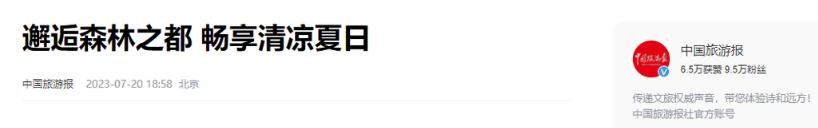 1、原文刊登于中国旅游报2023年7月20日发布的关于《邂逅森林之都 畅享清凉夏日》的报道;