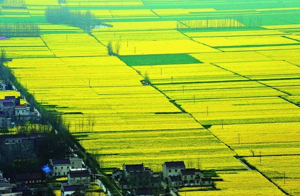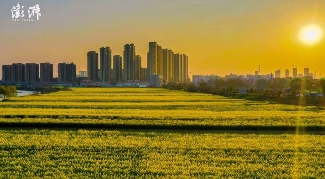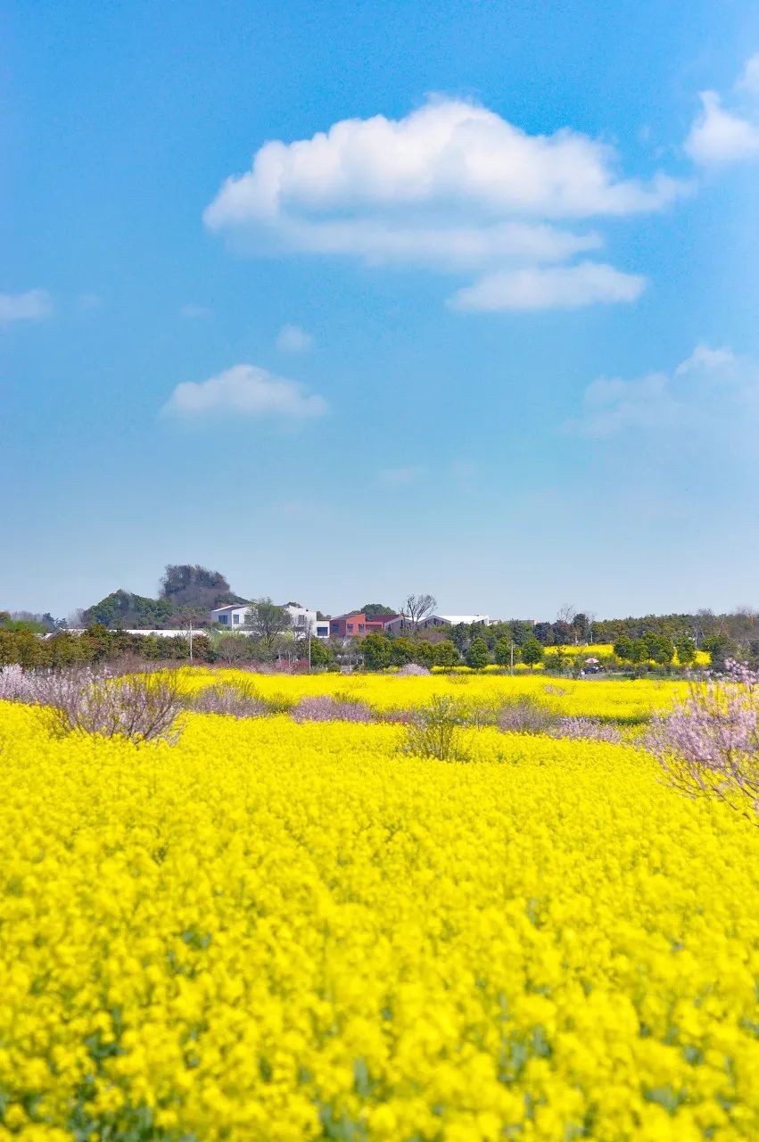 浓浓的春意诉说着高淳的美好,在微风的吹拂下,像是一片金色的海洋,与头顶的蓝天白云、与远处的房屋,构成了一幅画。
