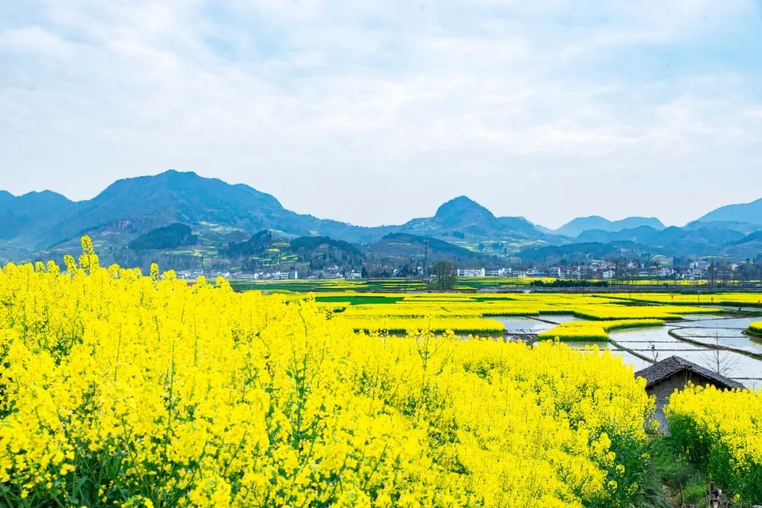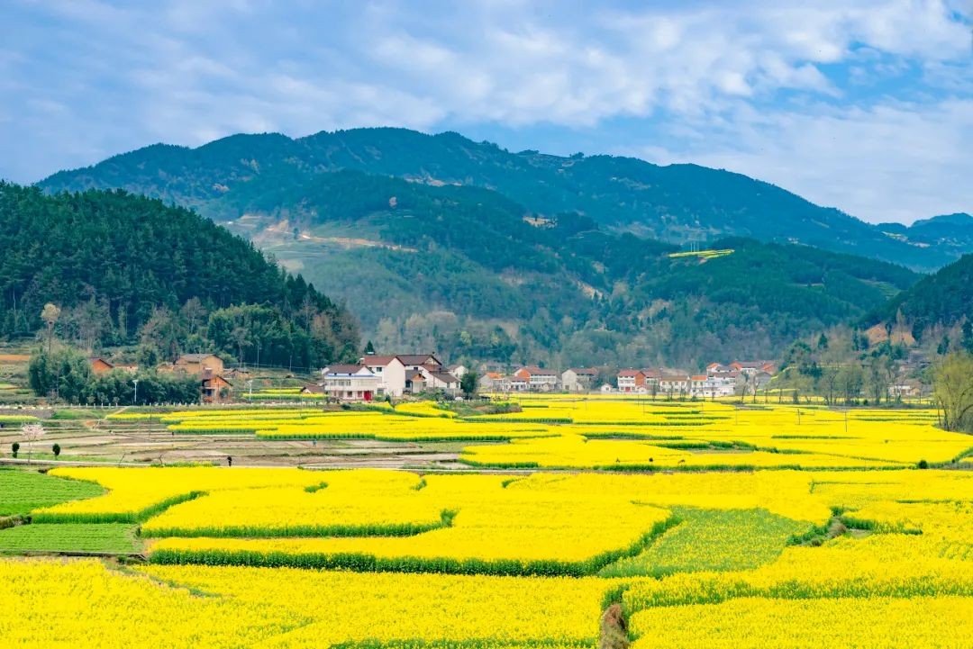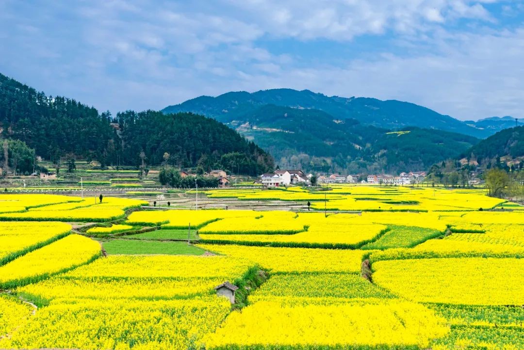 这里50余万亩油菜花齐放,山岭、村舍、道路、河流风景如画,步步有景,处处盛春,到处飘荡着令人陶醉的香气,一派世外桃源的景象。