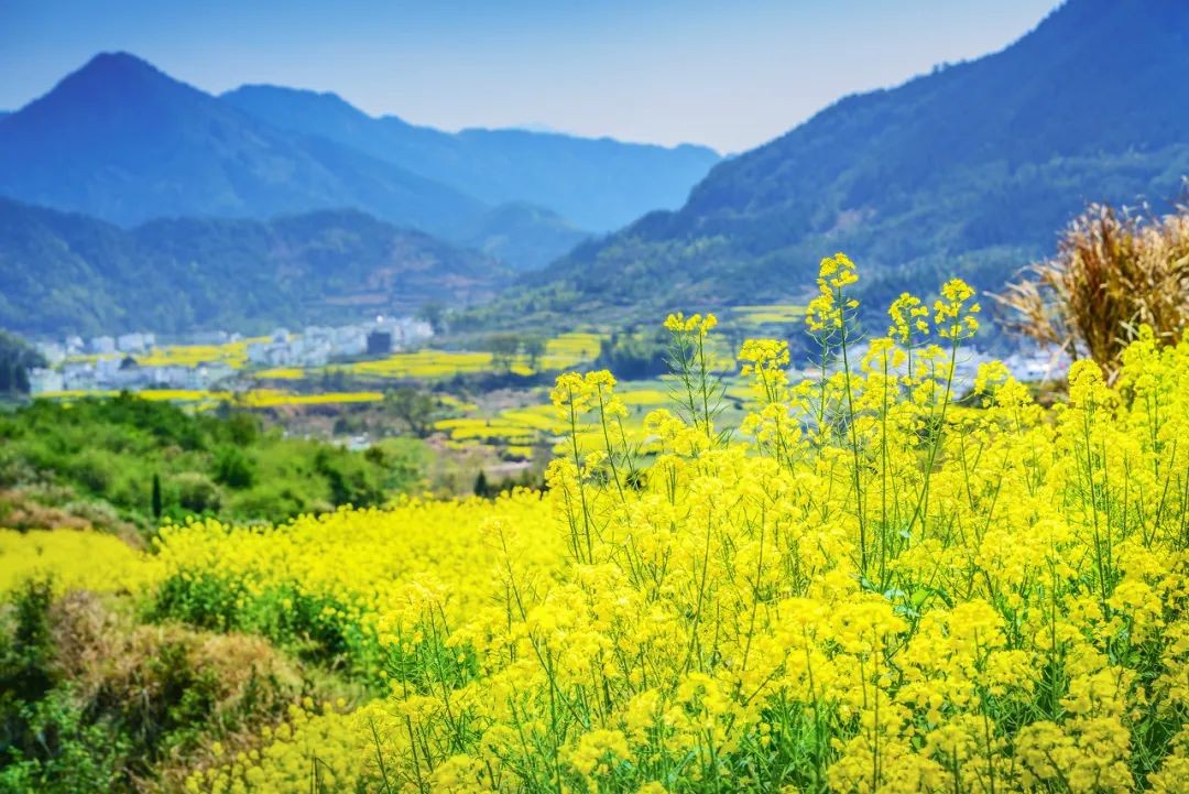 这里的油菜花盛开时期为3月-4月,西递和宏村都是最出名的安徽古村落,相隔不远。